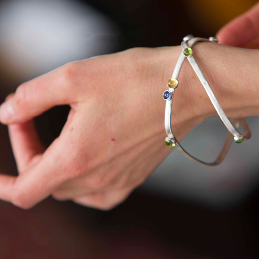 Stack your slender 3.5mm width square bangles and enjoy the colorful genuine cabochon stones nestled with sterling silver! Price is for 2 bangles.